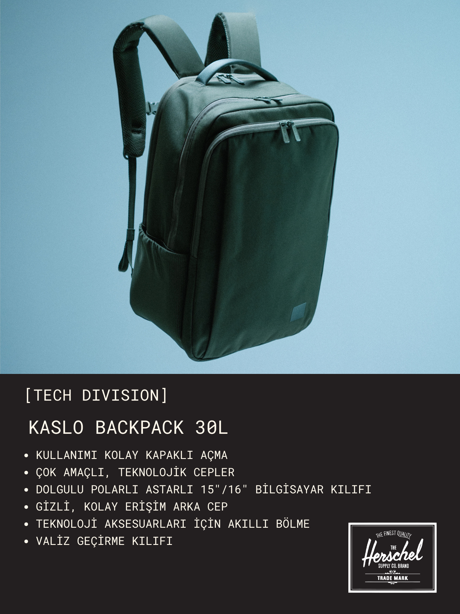 Herschel Seymour | Su İtici Kumaş Sırt Çantası, 16" Laptop Uyumlu, 26 L