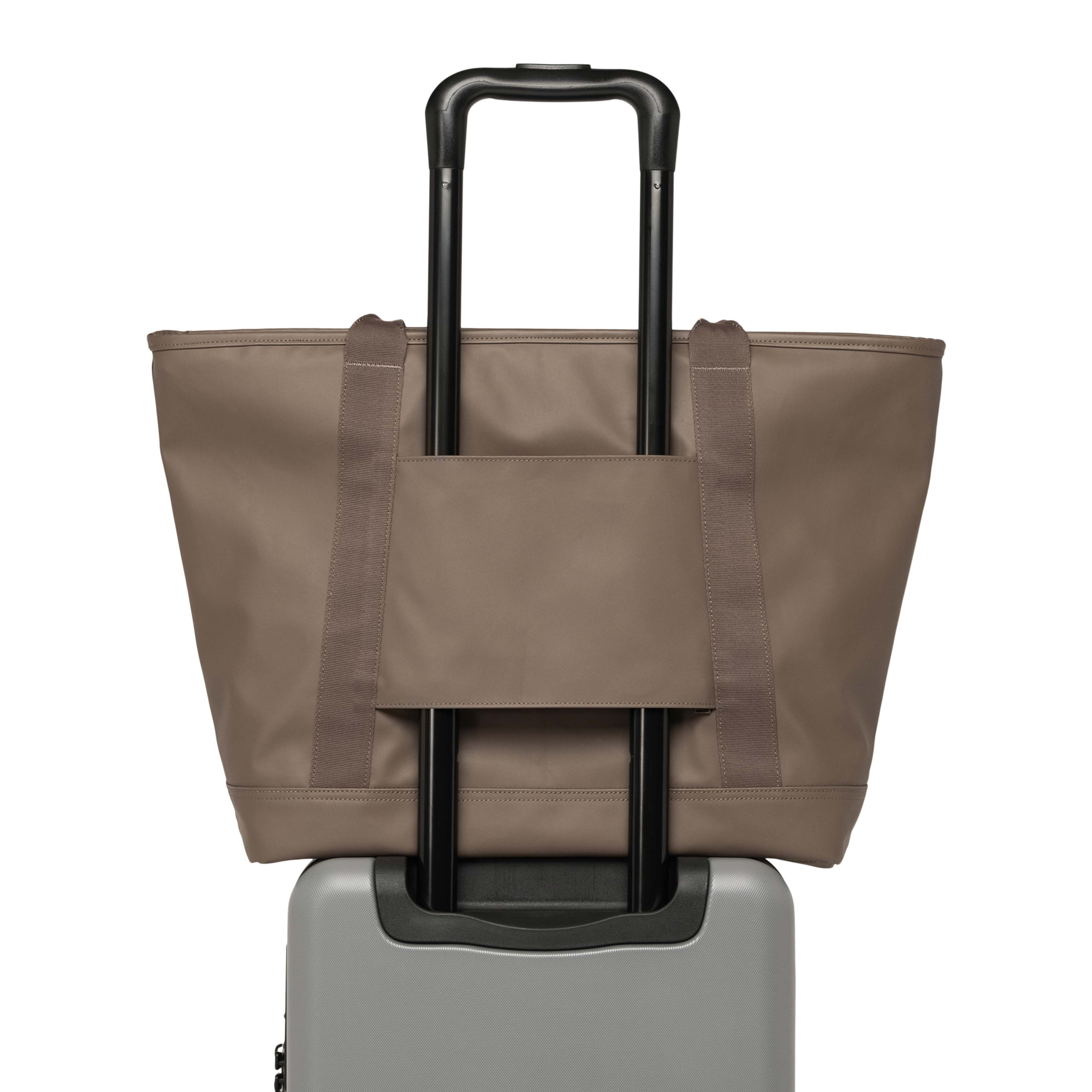"11653-07057-OS Yağmuru iyi biliriz. Mat kaplamayla üretilen Alberni Tote, Vancouver, BC’deki yağmurlu işe gidip gelmelerden ilham aldı. İhtiyacınız olan her şeyi sığdıracak şekilde tasarlandı. Fermuarlı ön cep, geniş ana bölme, iç cepler ve su şişeniz için saklama kılıfı bulunur. Daha uzun yolculuklar için, fermuarlı trolley kılıfı sayesinde valizinize takabilirsiniz.